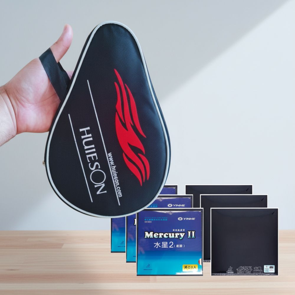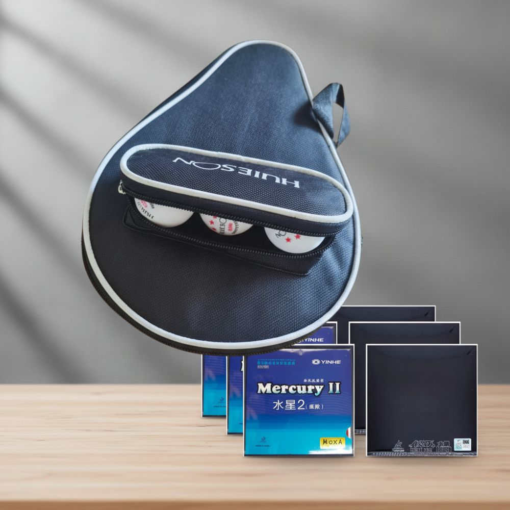 O Kit de Tênis de Mesa Huieson + Yinhe Mercury II foi montado especialmente para quem busca qualidade, controle e efeito em alto nível de jogo.